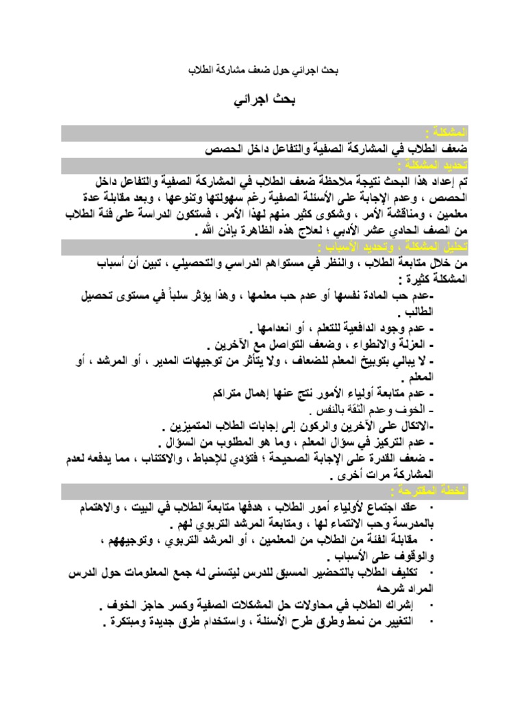 بحث اجرائي حول ضعف مشاركة الطلاب