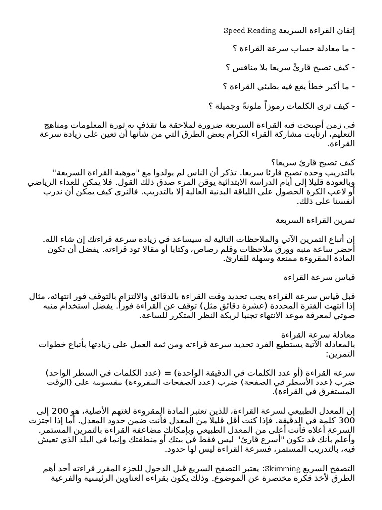 إتقان القراءة السريعة Speed Reading Doc