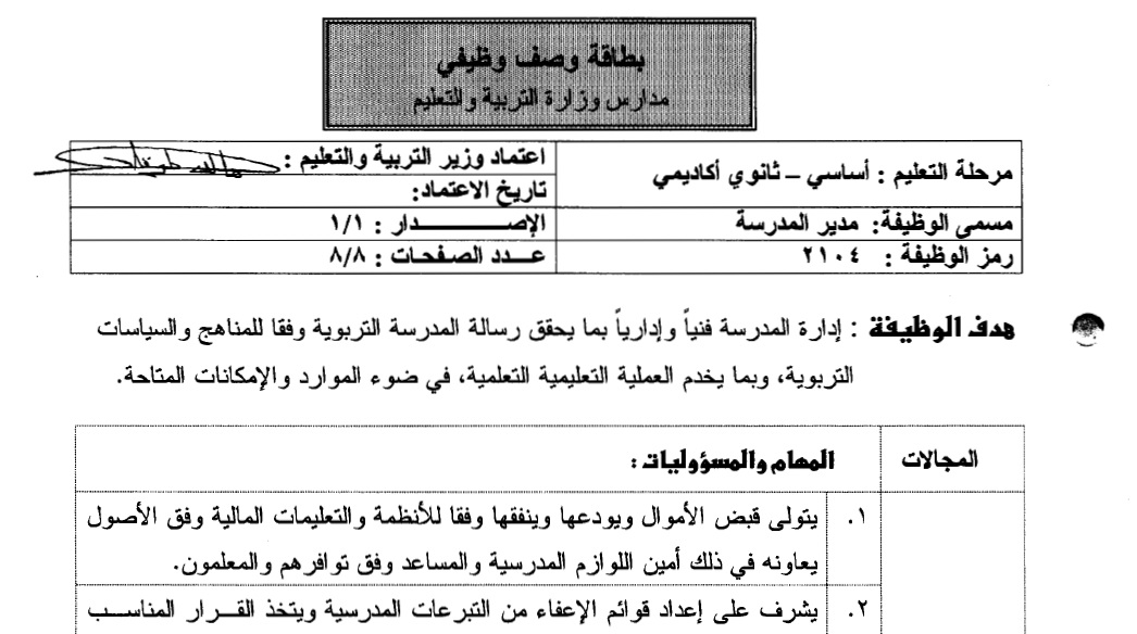 ننشر بطاقات الوصف الوظيفى لوظائف معلم مساعد معلم معلم اول معلم اول أ معلم خبير والعاملين بالتربية والتعليم