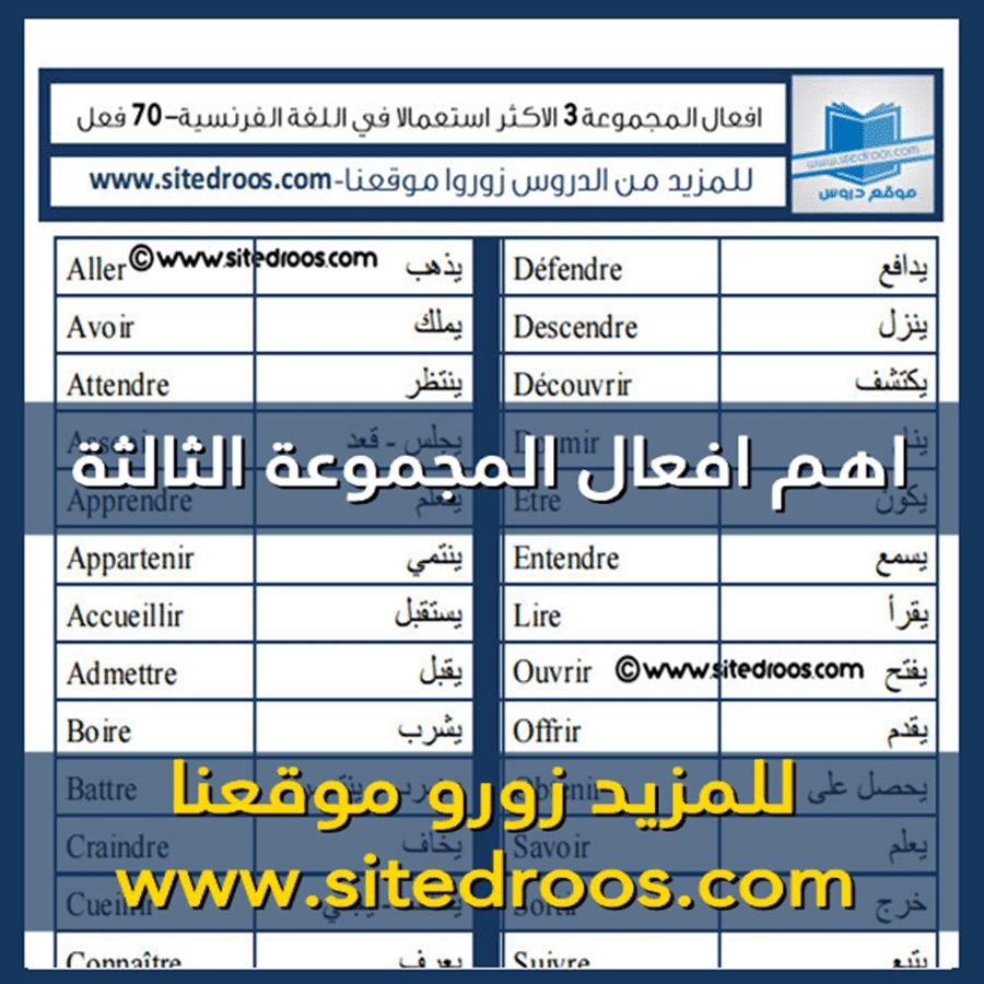 افعال المجموعة الثالثة في اللغة الفرنسية تحميل Pdf حسوب I O